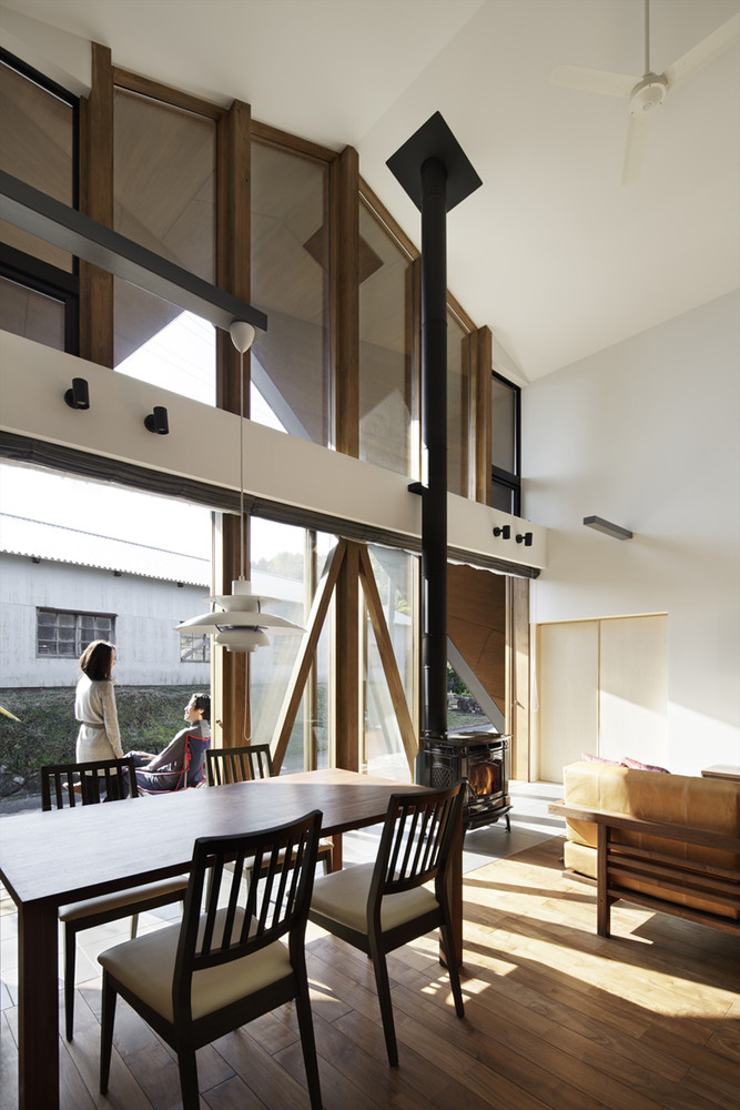 客厅和饭厅是住宅的中心,其他房间(厨房、日式起居室、卧室、浴室等)围绕着它布局设计。连接客厅的半户外空间采用了木制的天花板,这个空间也将作为村民集会的社交场所。