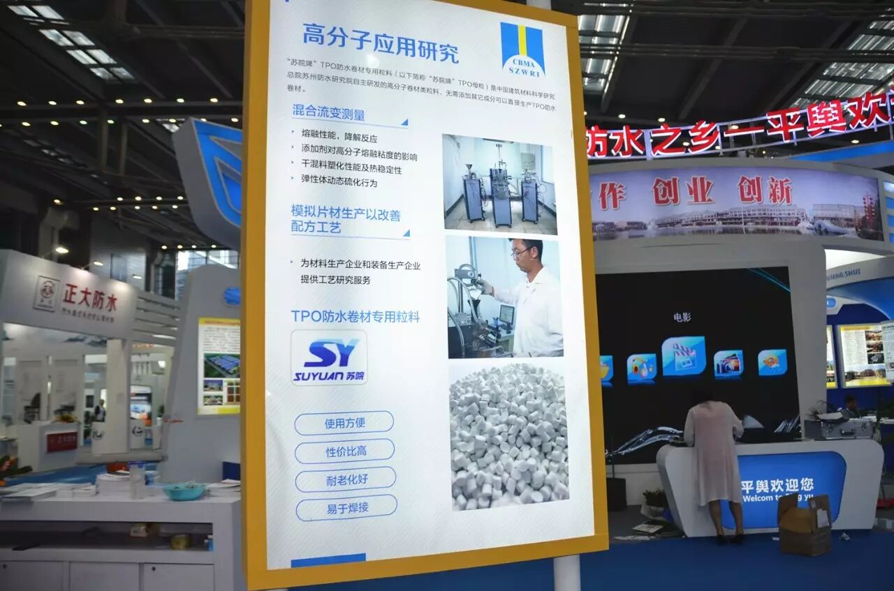 据悉,苏州院每年都在不断推陈出新,主要以应用方面为侧重点,解决难点问题。据羡永彪介绍,今年苏州院将会继续推进高分子产业,配合中国建筑防水协会的工作。展会上,苏州院推广了其与陶氏合作的TPO母料,帮助企业占领应用市场树立信心。